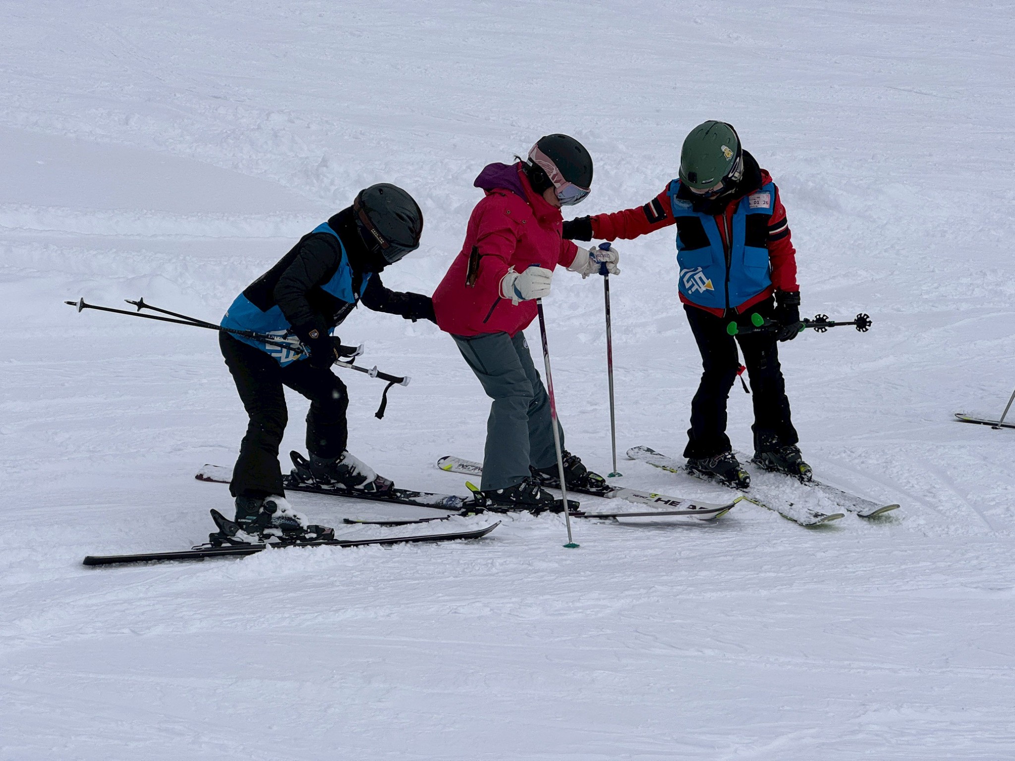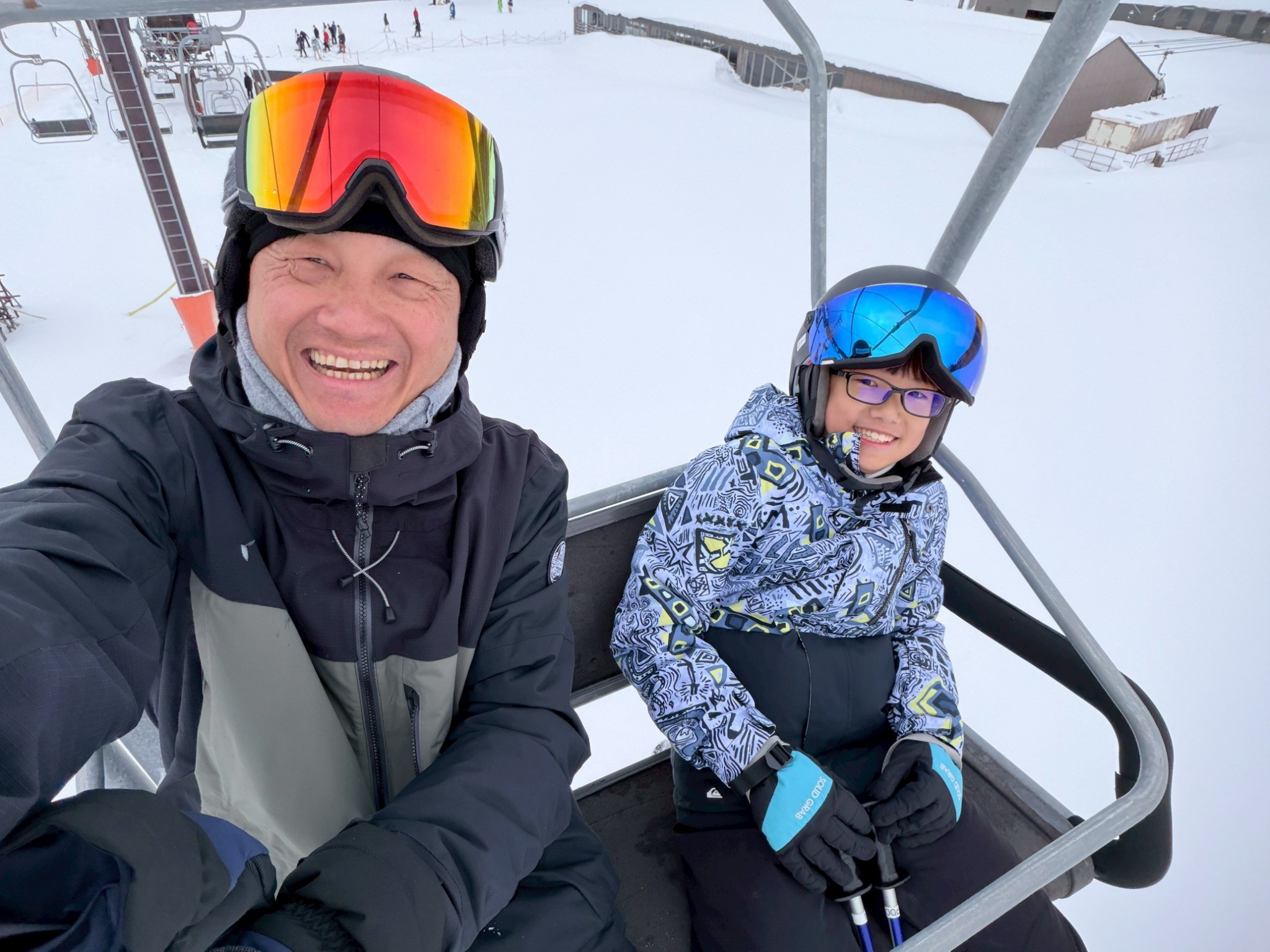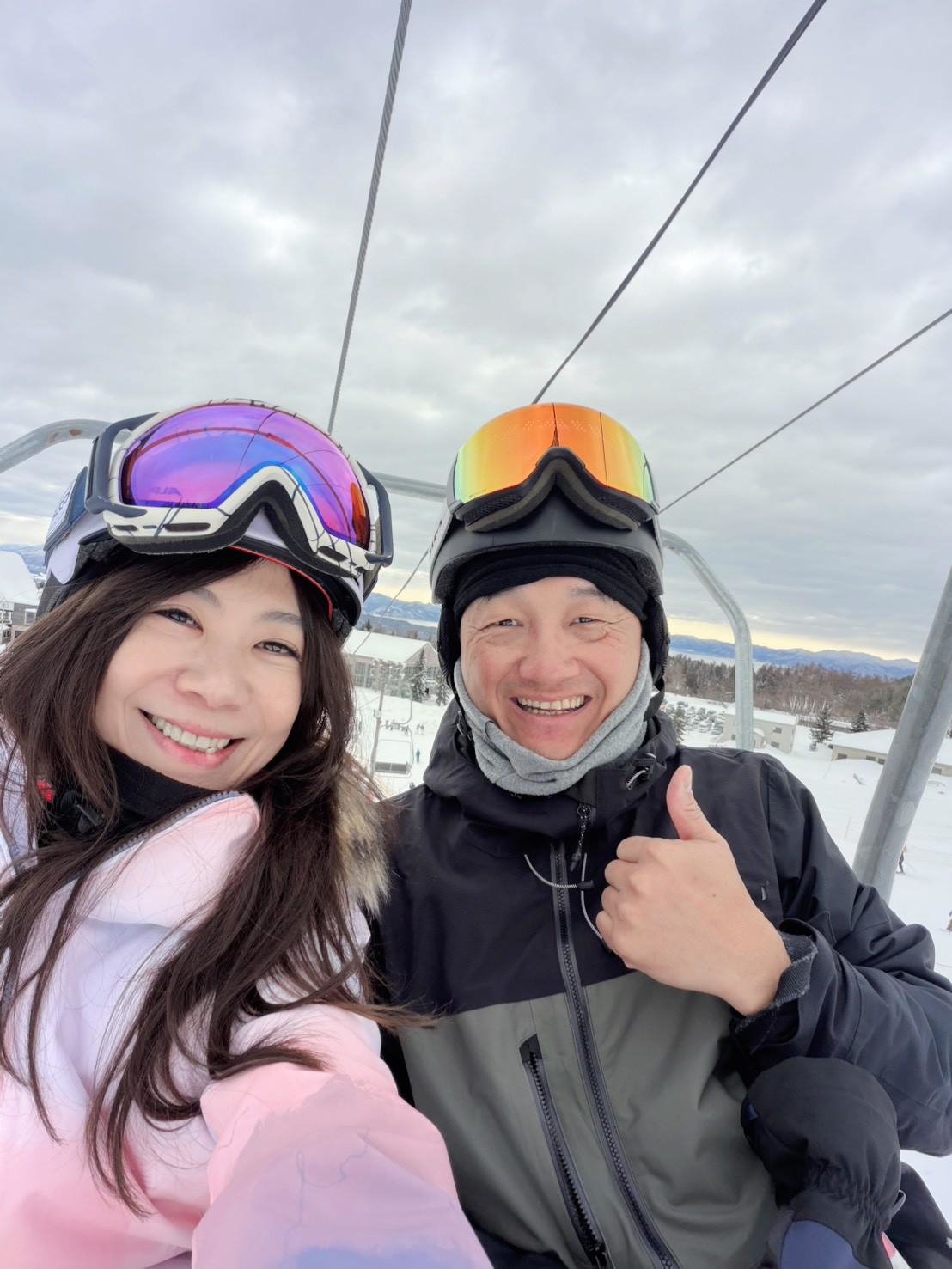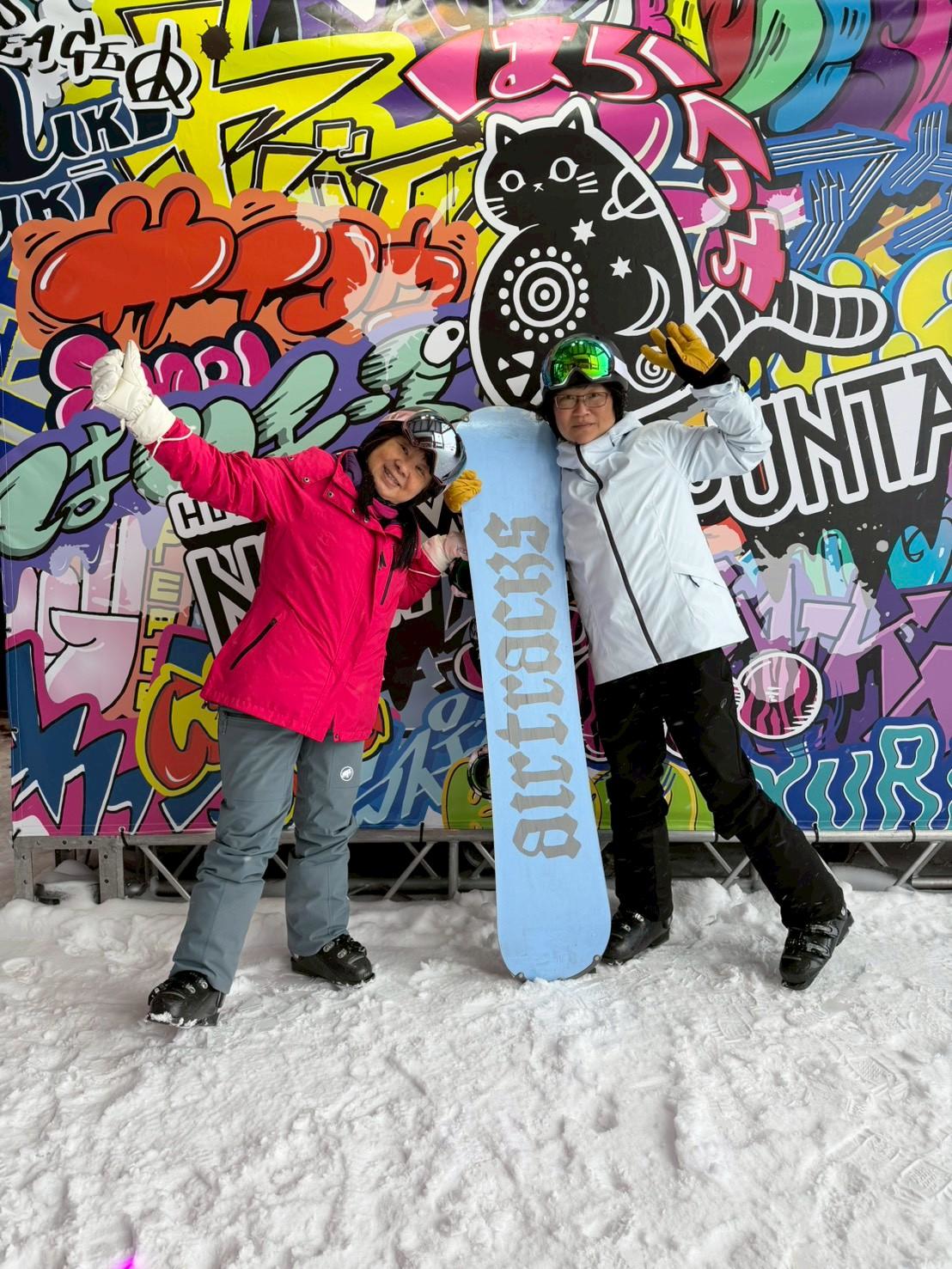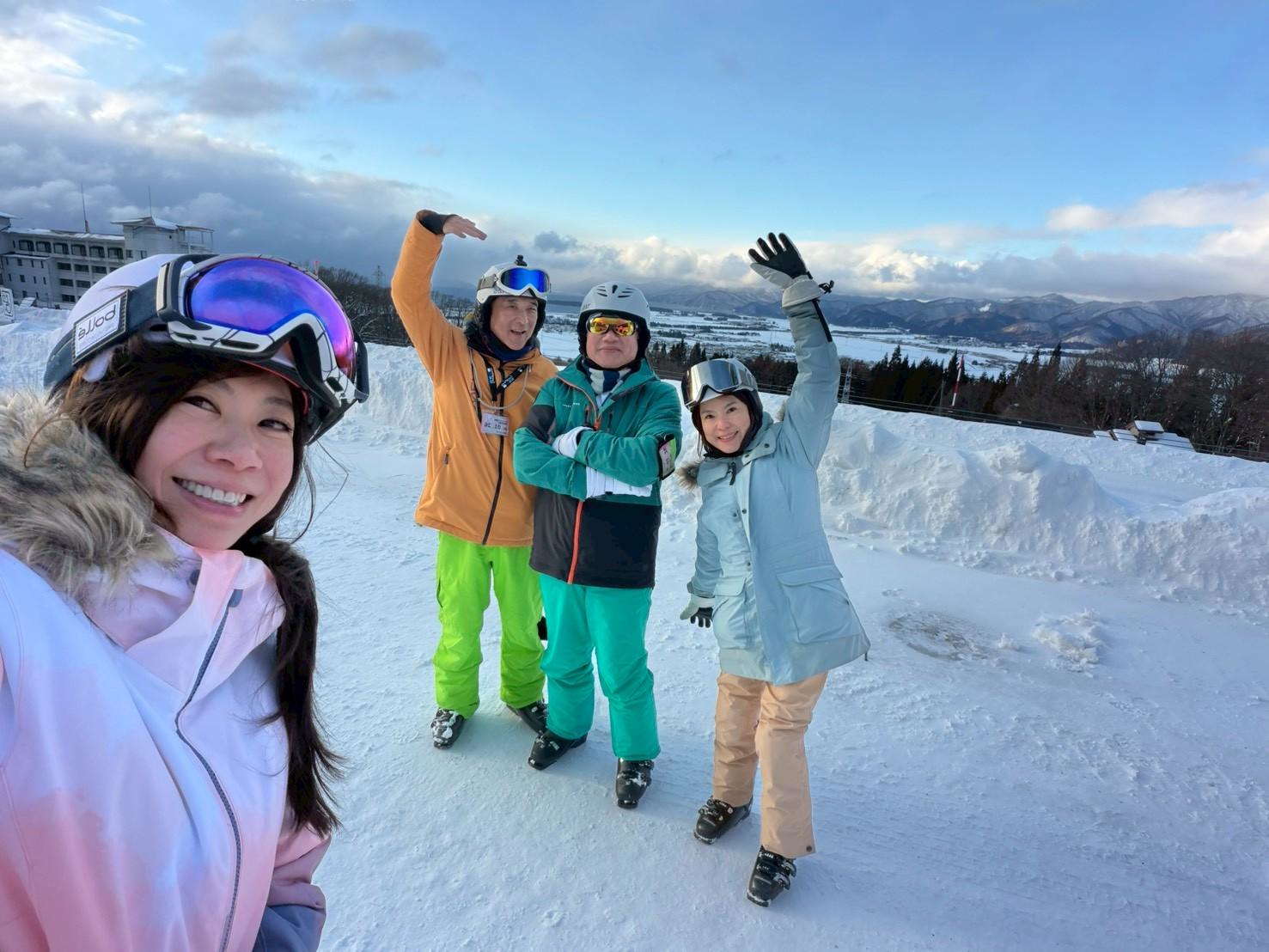 - 家庭共學: 有校友帶著兩個女兒及準女婿同行,在百能教練的特訓下,成功挑戰「黑線(高難度滑道)饅頭區」,甚至達到二級教練考試的實力。