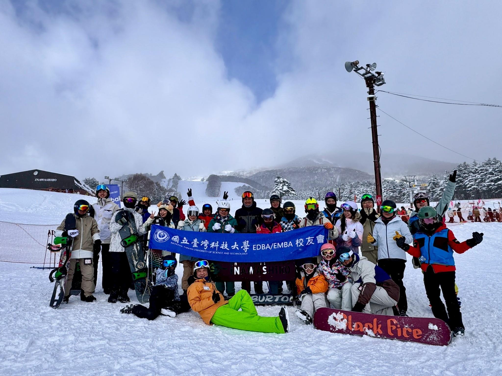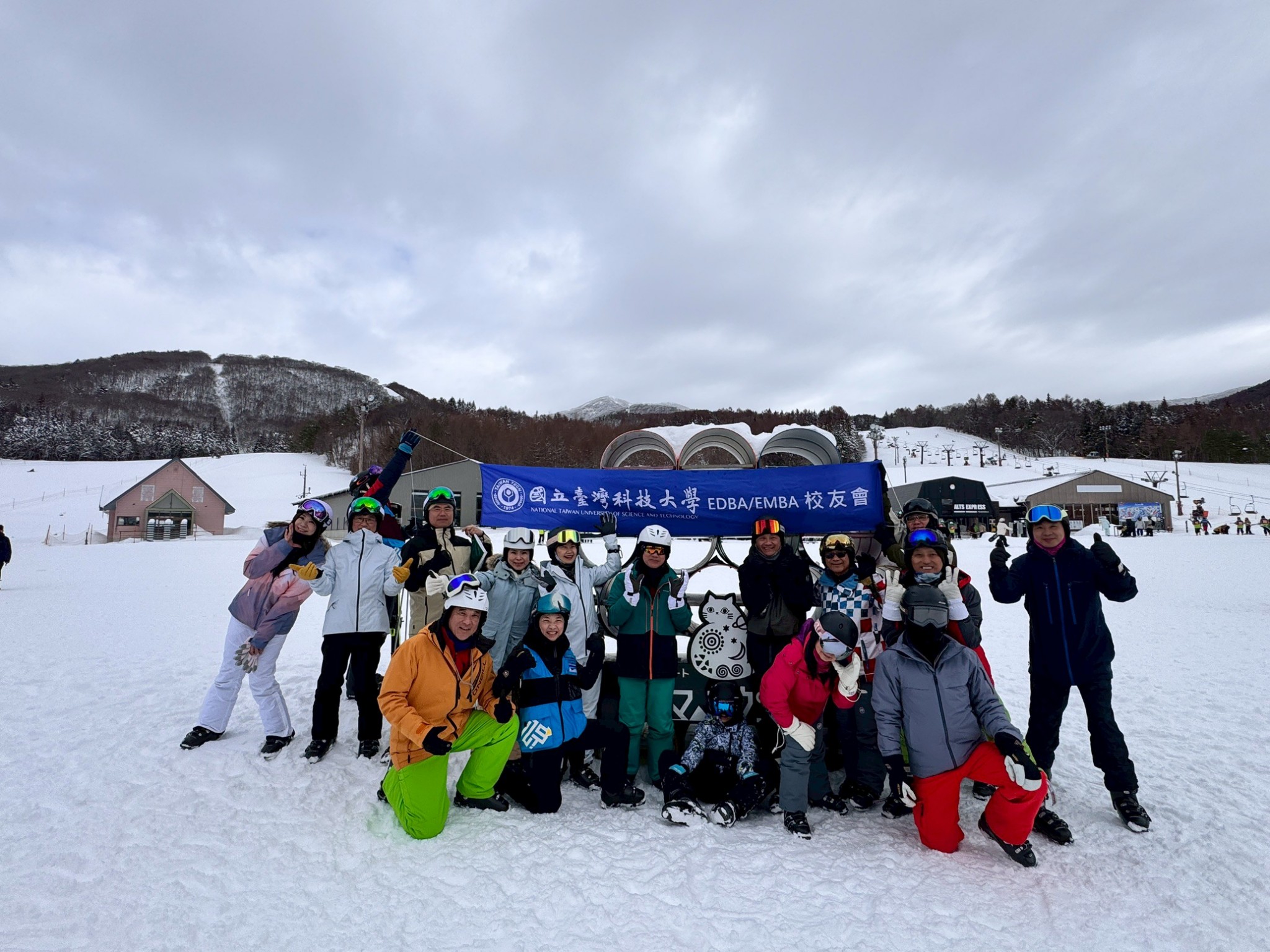115 年 1 月 24 日至 28 日,台科大 EMBA 校友會展開了為期五天的「日本豬苗代湖滑雪精進團」。在冬日暖陽與優質粉雪的見證下,由理事長日輝學長、欒斌前院長及陳正綱前院長親自領軍,帶領校友們在專業滑雪與跨代交流中,寫下難忘的回憶。